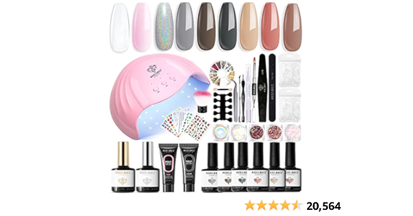 Amazon Com Modelones Gel Nail Polish Kit With U V Light 6 Colors Nude Gray Brown Gel Polish 2 Poly Extension Gel 48w Nail Dryer 36 Pcs Dual Forms Rhinestones Manicure Starter Kit Diy At