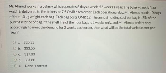 Solved Mr Ahmed Works In A Bakery Which Operates 6 Days A Chegg Com